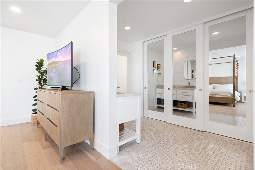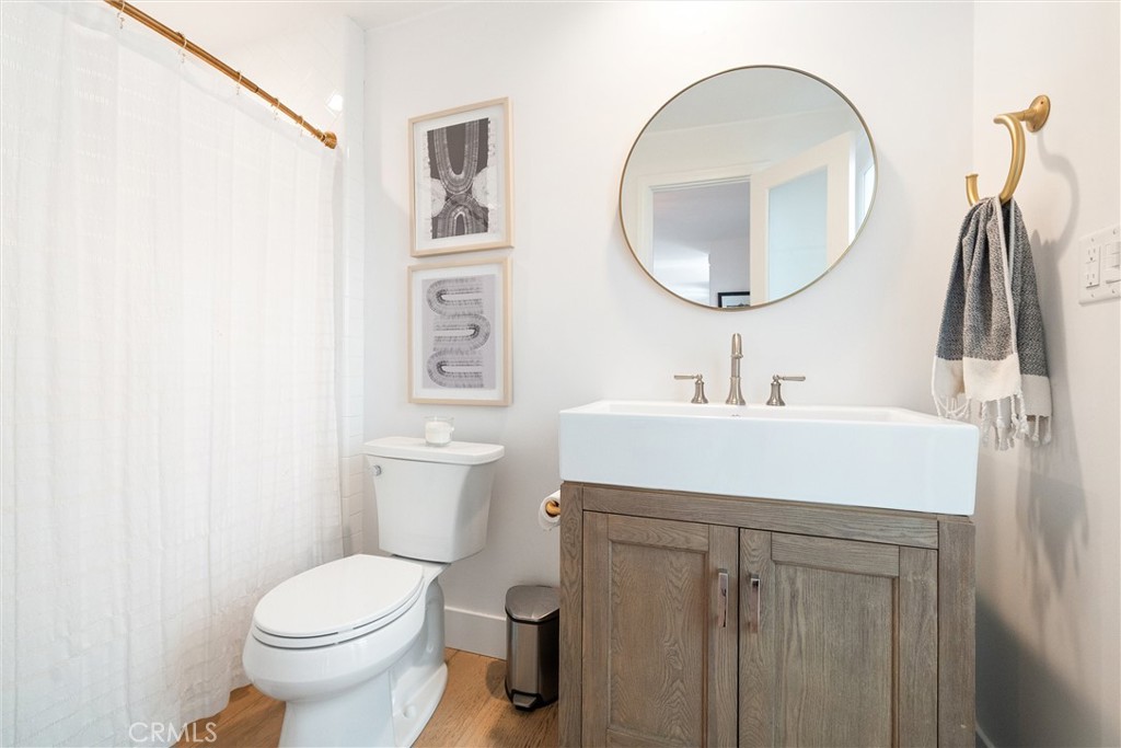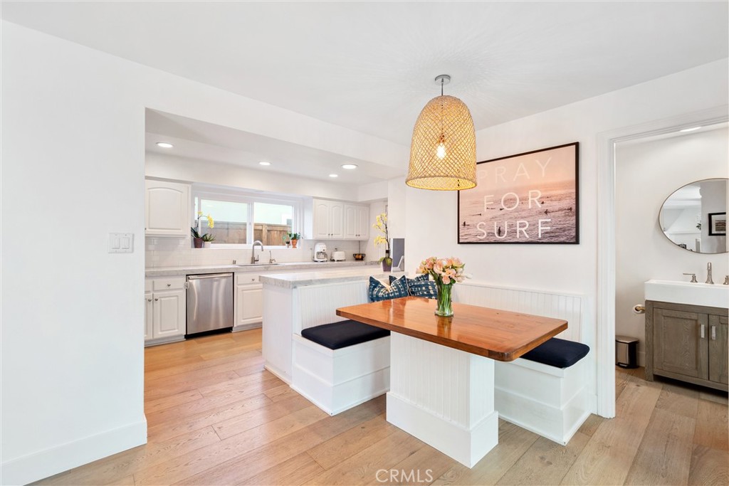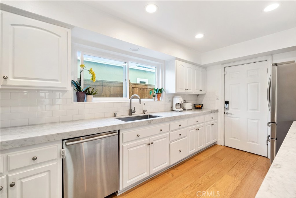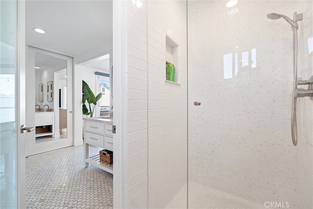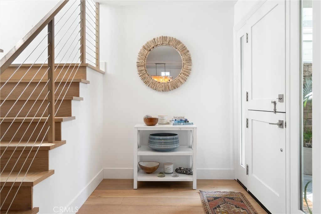 This exceptional remodeled four bedroom, three bath home is located steps from one of Newport's finest beaches. Featuring a stunning gourmet kitchen with slab Carrara marble counters, subway tile backsplash, Viking and Bosch appliances, custom cabinetry and a built-in banquette. The open living room and formal dining room offer hardwood flooring, custom lighting, and a fireplace as well as French doors leading to a private patio which are ideal for entertaining. The primary suite includes his and her closets and a well-appointed ensuite bath featuring stone counters, a custom dual sink vanity, and a walk-in shower. The other three spacious bedrooms include custom windows with high ceilings, and built-in closet systems. This home offers a second story deck complete with a Jacuzzi spa which is a welcomed opportunity to enjoy the ocean breezes. It includes a main floor full bath with private entry, and an outdoor shower. This is convenient after beach time as is the oversized two-car garage with extra space for surfboards, bikes, and general storage. This home also offers luxury furnishings, central air conditioning, a sound system, and a washer/dryer. Enjoy beach living as well as the amenities of the Newport Shores Community Association pool, clubhouse, tennis, pickleball, basketball, volleyball, play area, and BBQ.