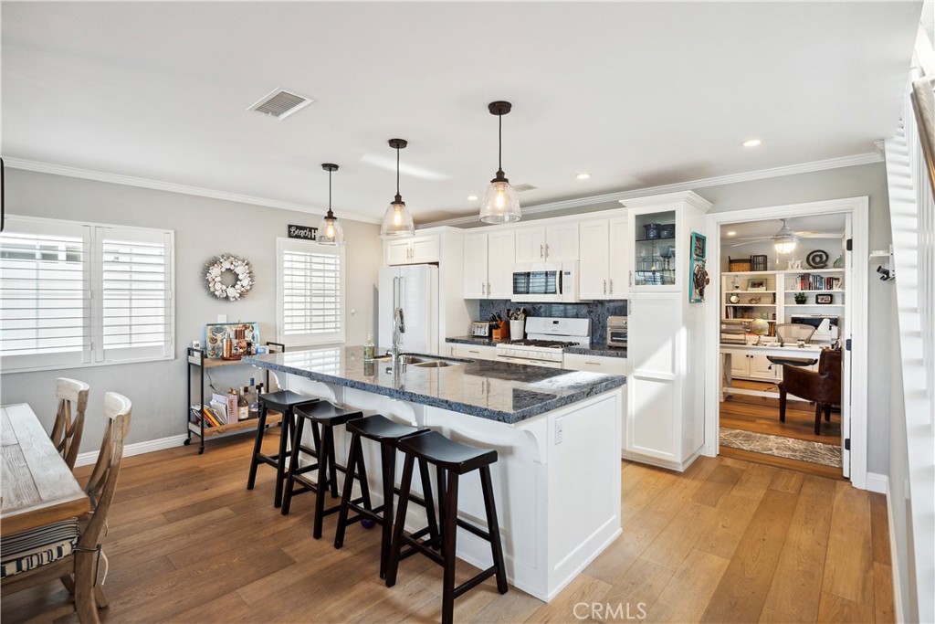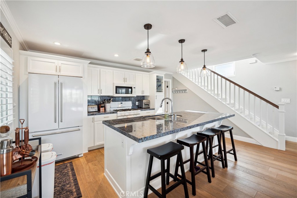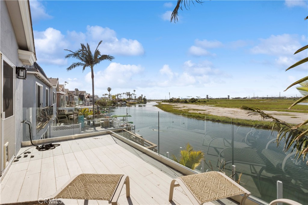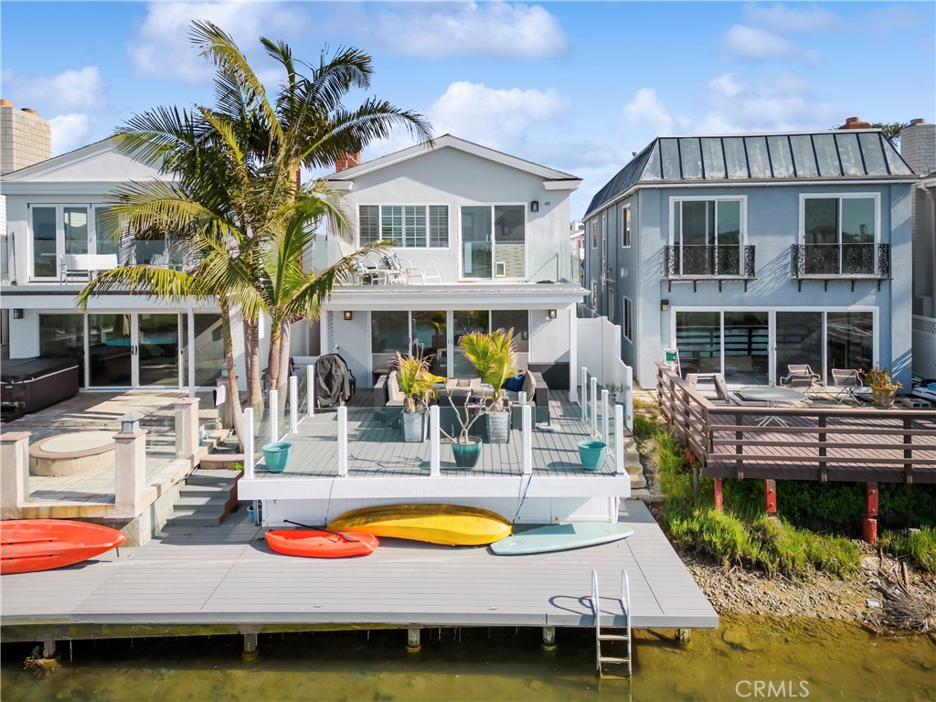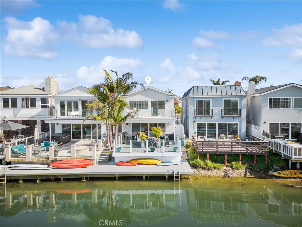 Experience endless water views and refreshing ocean breezes from this elegant four-bedroom, three-bath canal-front residence in Newport Shores--just two blocks from the beach. The spacious kitchen, appointed with quartz countertops, flows seamlessly into the open dining and living areas, both extending to a canal-facing deck ideal for entertaining or unwinding by the water. The primary suite features dual closets, a spa-inspired bathroom, and a private balcony spanning the length of the home, capturing captivating canal views. A desirable main-level bedroom with an en-suite bath complements two additional upstairs bedrooms, each showcasing designer finishes, generous closet space, and beautifully updated baths. A versatile bonus room with a built-in coffee bar opens to a private deck, offering a perfect space for relaxation or a home office. Additional highlights include air conditioning, a two-car garage with built-in storage, and extra exterior parking. Residents of Newport Shores enjoy an exceptional array of community amenities, including a pool, tennis, pickleball, volleyball, and basketball courts, as well as a playground, clubhouse, and BBQ area. Blending refined coastal design with an active beachside lifestyle, this home offers the ultimate Newport Beach living experience--just moments from the sand.