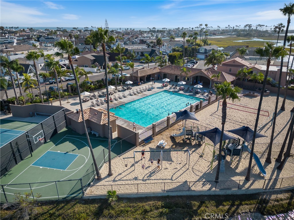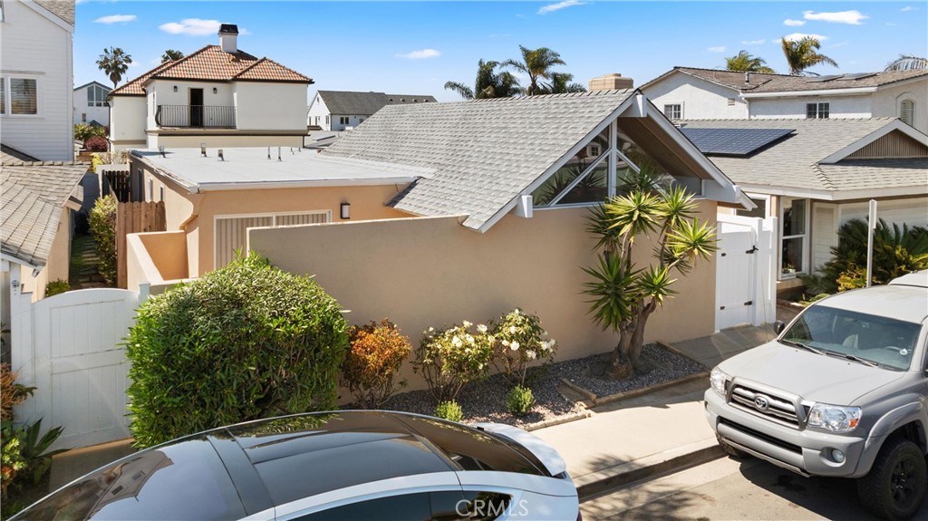 Located just two blocks from the beach, this updated home offers the perfect blend of modern elegance and coastal charm. The kitchen features sleek countertops, custom cabinetry, and stainless steel appliances, all designed with both style and functionality in mind. Flowing seamlessly from the kitchen, the dining area and living room open onto a spacious patio, ideal for entertaining or simply enjoying the refreshing ocean breezes. The primary suite impresses with vaulted ceilings and a thoughtfully updated en-suite bath. Adjacent to the suite is a private patio complete with a relaxing jacuzzi. An additional bedroom showcases open-beamed ceilings and generous closet space. The third bedroom is currently configured as a flexible/additional living area. This home also boasts updated, stone-clad bathrooms, recessed lighting, a display fireplace, a private courtyard, and a two-car garage. Residents can take advantage of the Newport Shores Community Association amenities, which include a pool, tennis courts, volleyball and basketball courts, a playground, and a barbecue area.