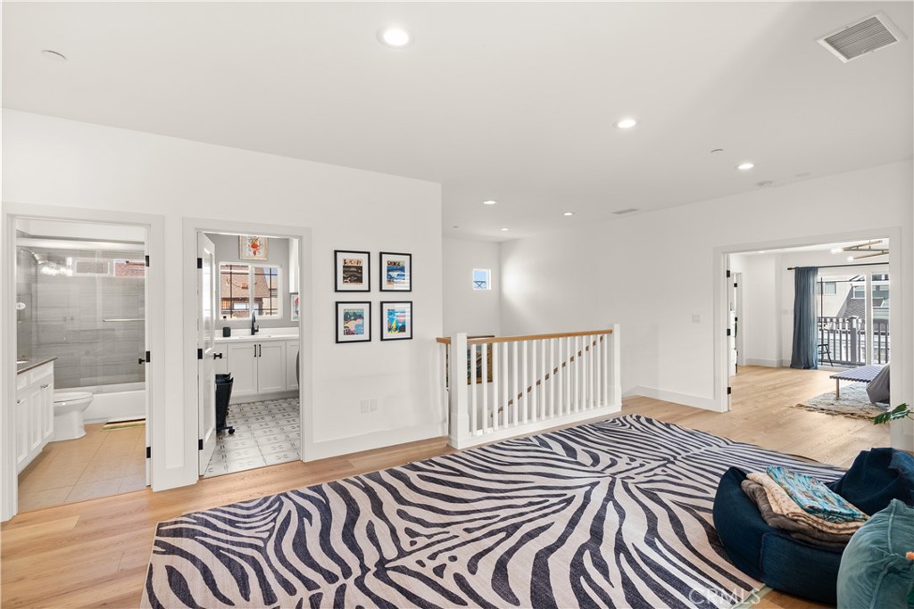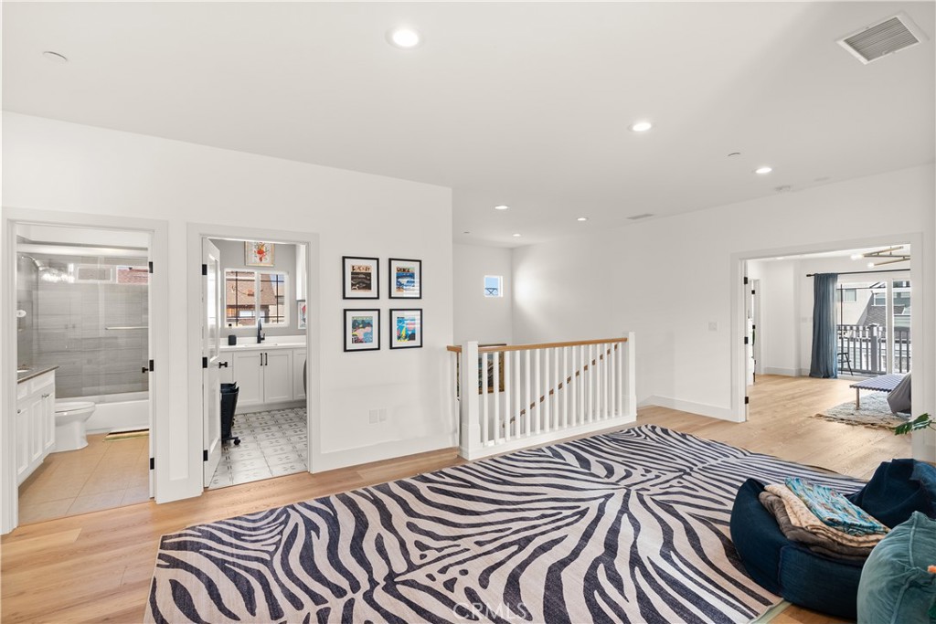 Thoughtfully reimagined with refined coastal living in mind, every inch of this expansive beachside retreat exudes quality, comfort, and sophistication. This stunning four-bedroom, four-bath renovated and expanded residence, is located two blocks from one of Newport Beach's most sought-after stretches of sand. The main level welcomes you with wide-plank flooring, dramatic soaring ceilings, and an airy open-concept layout. At the heart of the home lies a remarkable chef's kitchen, featuring custom cabinetry, sleek quartz countertops, and professional-grade stainless steel appliances--seamlessly flowing into the generous living and dining areas, complete with built-ins, designer lighting, and a cozy fireplace. Also on the main level is a spacious bedroom with a tastefully remodeled en-suite bath, a versatile bonus room ideal for a home office or gym, a second updated full bath, and abundant storage throughout. Upstairs, the primary suite is a true sanctuary with its own private deck, a spa-inspired en-suite bath with jetted tub and dual vanities, and a large walk-in closet. Step out to the rooftop deck for panoramic coastal views and ocean breezes. Two additional upstairs bedrooms feature custom closets, vaulted ceilings, and upscale lighting, accompanied by a flexible bonus space perfect for a media room, teen lounge, or secondary office, with direct access to another spacious outdoor deck. Additional highlights include a dedicated upstairs laundry room, central air conditioning, an outdoor shower, tankless water heater, fully upgraded plumbing and electrical systems, and a finished two-car garage with added storage. As a resident of Newport Shores, you'll enjoy resort-style amenities including a community pool, tennis and pickleball courts, volleyball, basketball, playground, and BBQ area--all just moments from the beach. This is coastal California living at its finest.