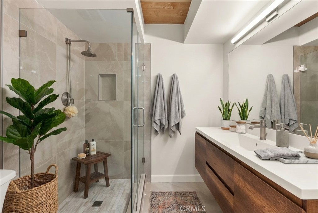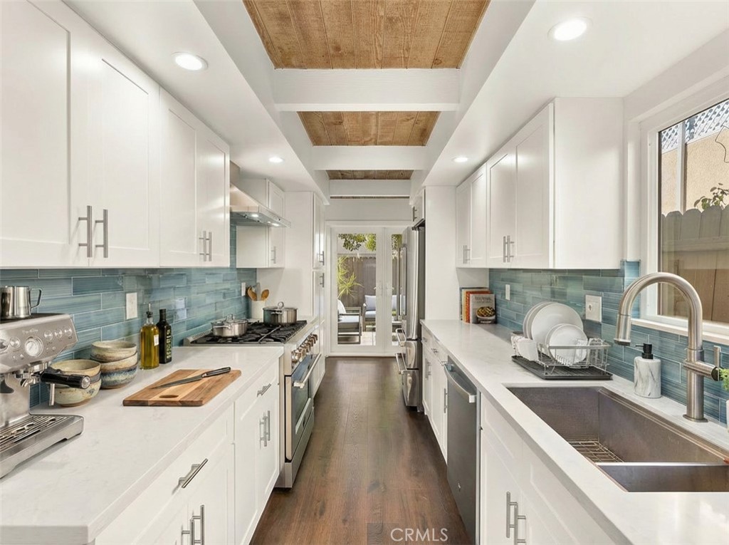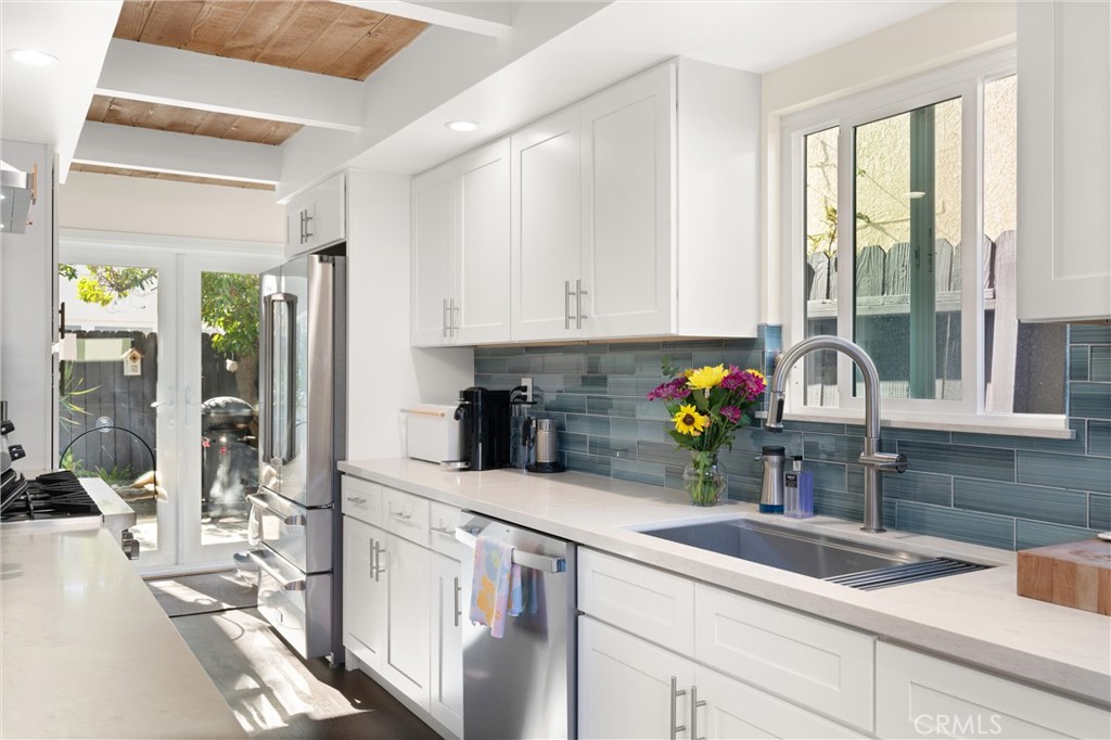 Located just two blocks from the pristine shores of Newport Beach, this beautifully remodeled three-bedroom, two-bathroom home combines modern luxury with coastal charm. Step inside to discover an open floor plan featuring dramatic cathedral ceilings. At the heart of the home, the kitchen has been thoughtfully renovated with top-of-the-line appliances and sleek finishes. Adjacent to the kitchen, the dining area opens onto a private patio, perfect for alfresco dining or enjoying your morning coffee. The primary suite is complete with an ensuite bathroom meticulously designed to provide a spa-like experience. The additional bedrooms feature high ceilings, ample closet space, and an abundance of natural light, as well as a shared beautifully remodeled bathroom. Enjoy ocean breezes and sunshine in outdoor spaces tailored for both relaxation and entertainment. A spacious balcony offers a serene escape, while two private patios provide ample room for gatherings with family and friends. Additional features include remodeled stone-clad bathrooms, open-beamed ceilings, hardwood flooring, recessed lighting, a fireplace, and a two-car garage. Located in the vibrant community of Newport Shores, this home offers an unparalleled lifestyle in a highly sought-after location as well as the amenities of the Newport Shores Community Association, including a clubhouse, pool, tennis courts, pickleball, volleyball, basketball, BBQ facilities, and a play area.